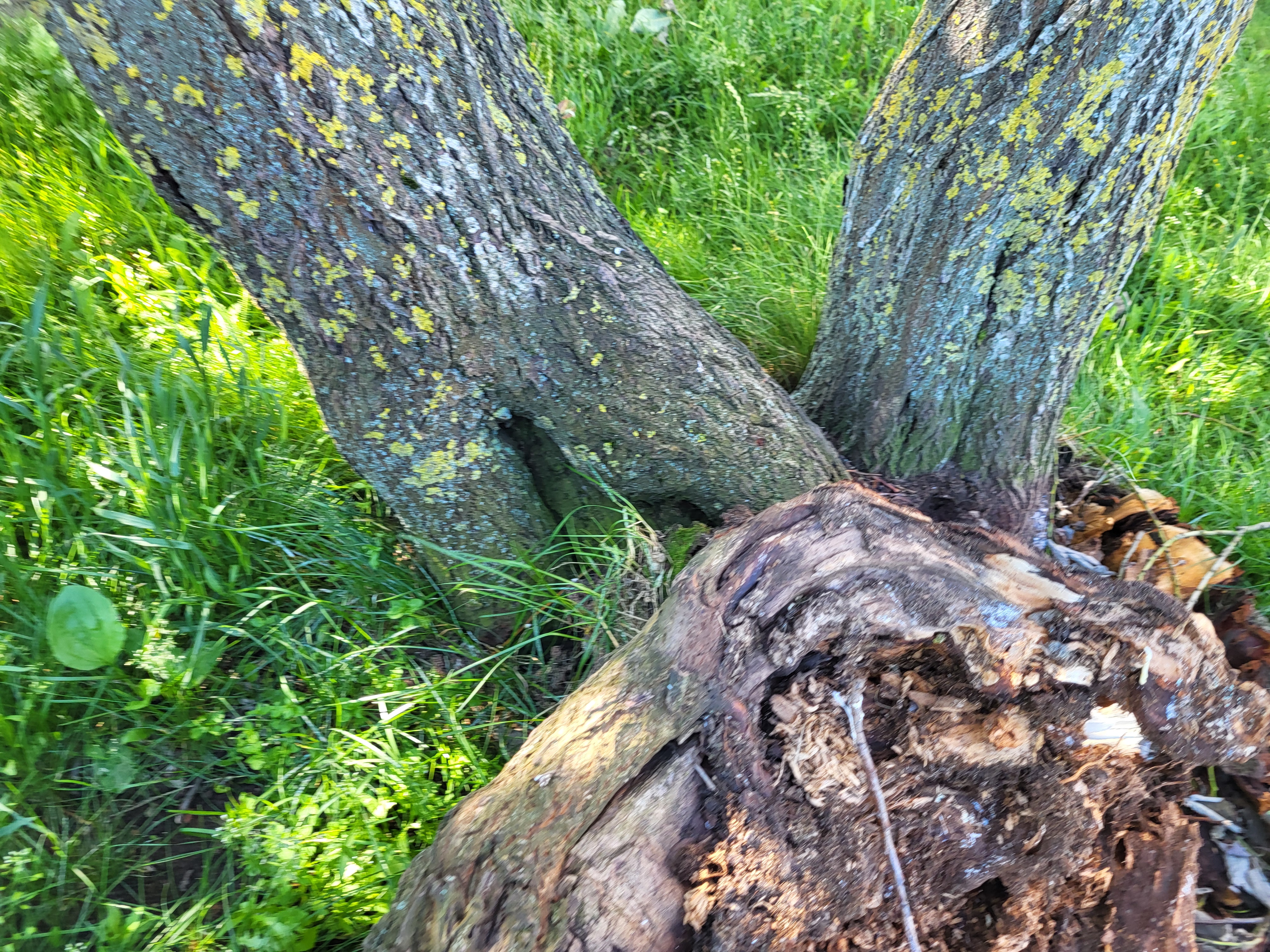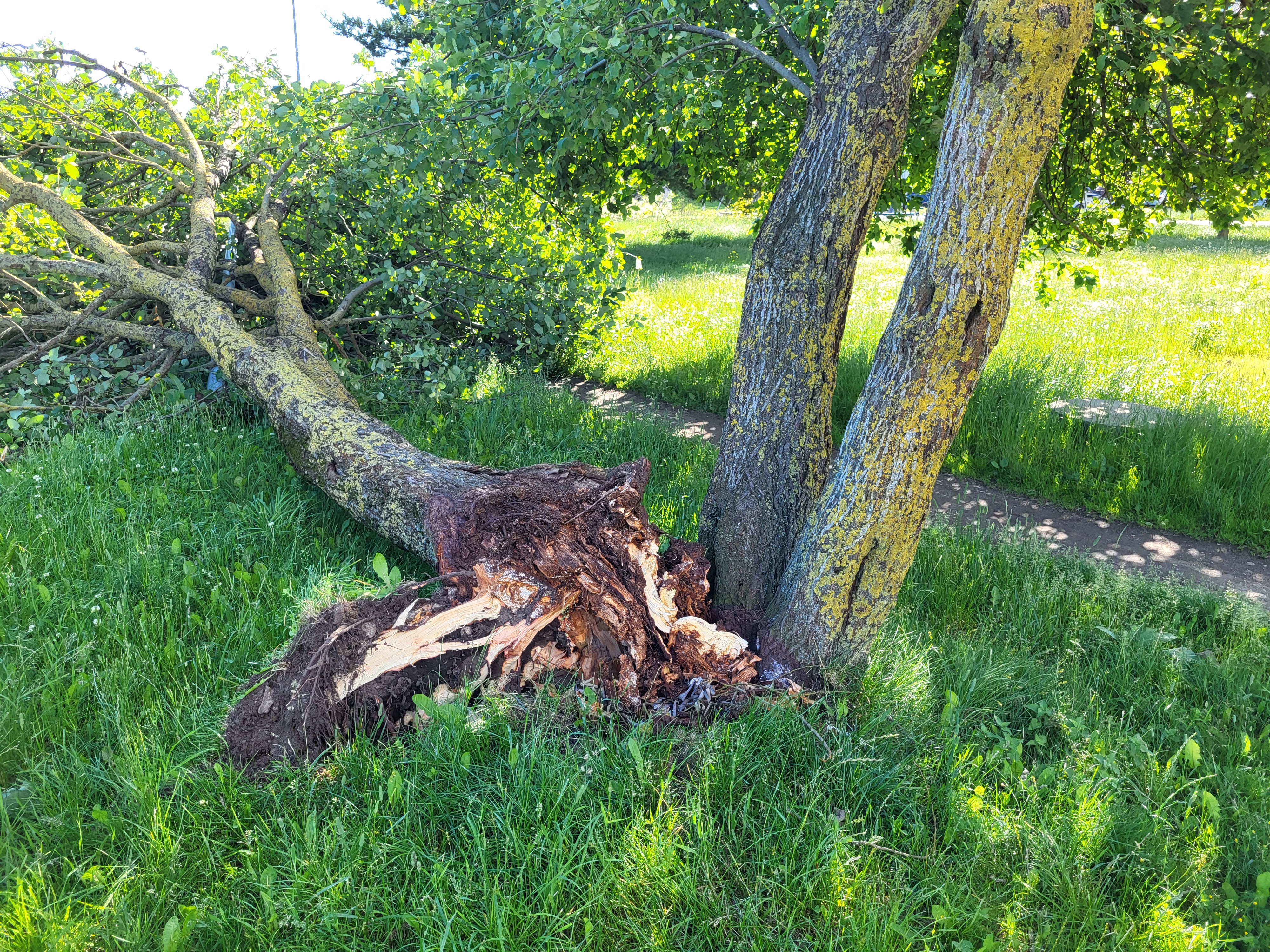 Ohtlik puu või ohtlik oks | Teavitaja Heli Kalvet. Üks kolmest harust on murdunud, teised mädanikuga. | Muhu 8b remmelgad1.jpg Muhu tn 8b remmelgad2.jpg |