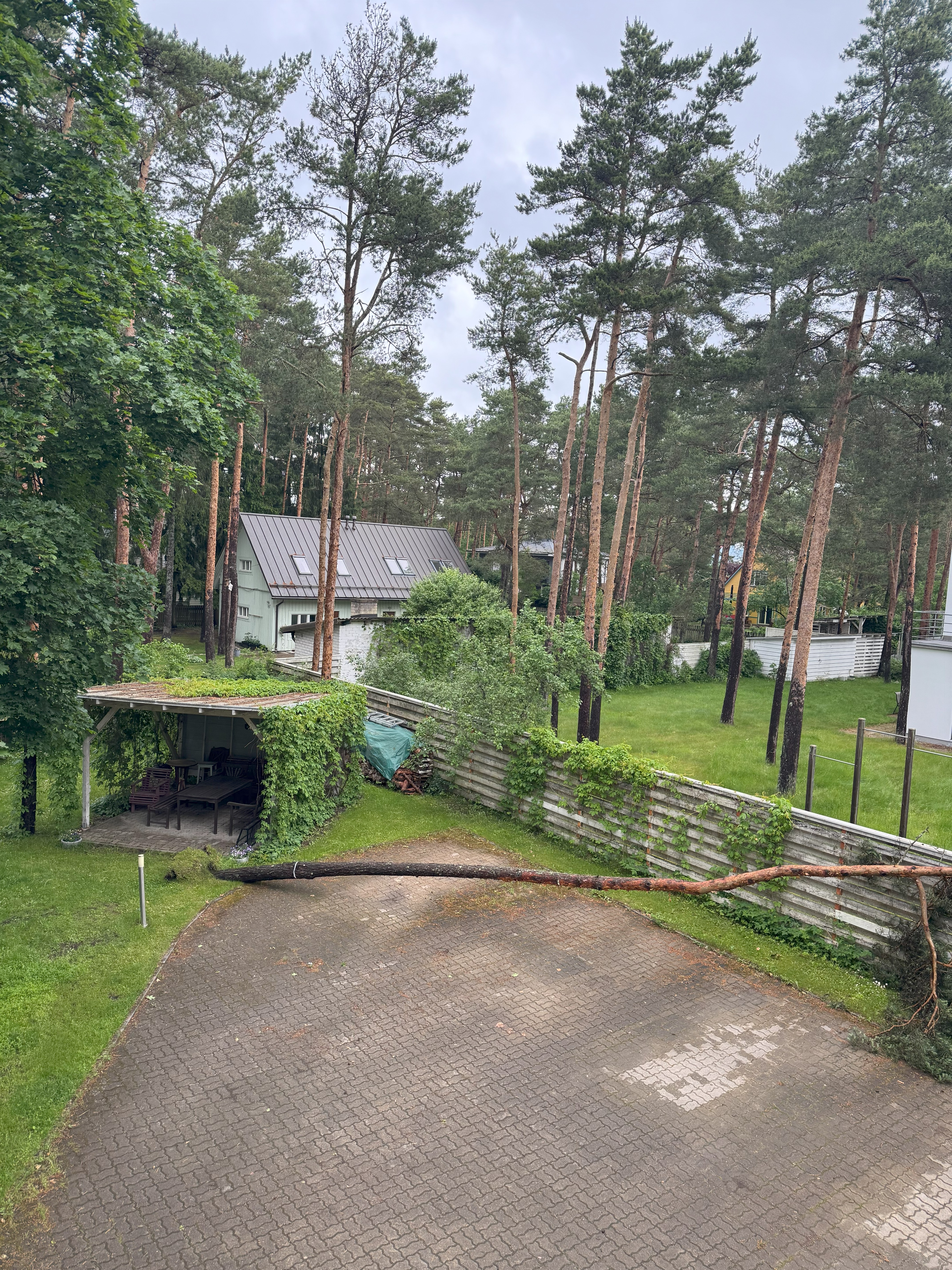 Ohtlik puu või ohtlik oks | Viltune puu, mille kohta raieluba taotlesime, kukkus ümber parklasse ja aia peale 20. juunil 00.32-02.48 vahel. Saagisime selle järgmisel päeval tükkideks. Pole vaja rohkem selle raieloaga tegeleda. | IMG_6419.jpg IMG_6418.jpg IMG_6420.jpg IMG_6421.jpg IMG_6422.jpg |