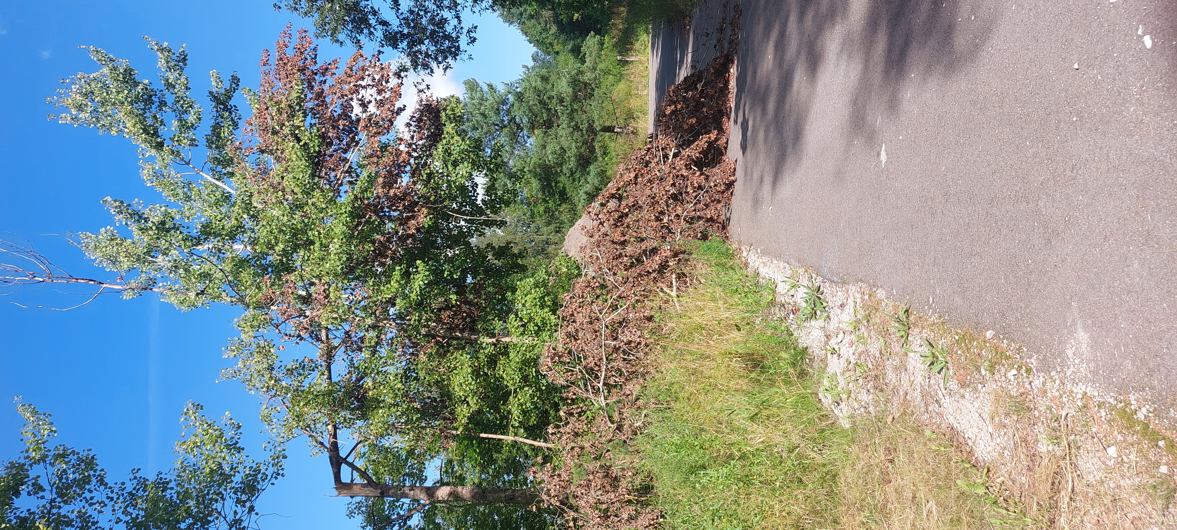 Ohtlik puu või ohtlik oks | Puu latv on murdunud ja rippes, teise puu(haab)otsas. Teise puu(haab) latv on kuivanud. | harilik haab.jpg |