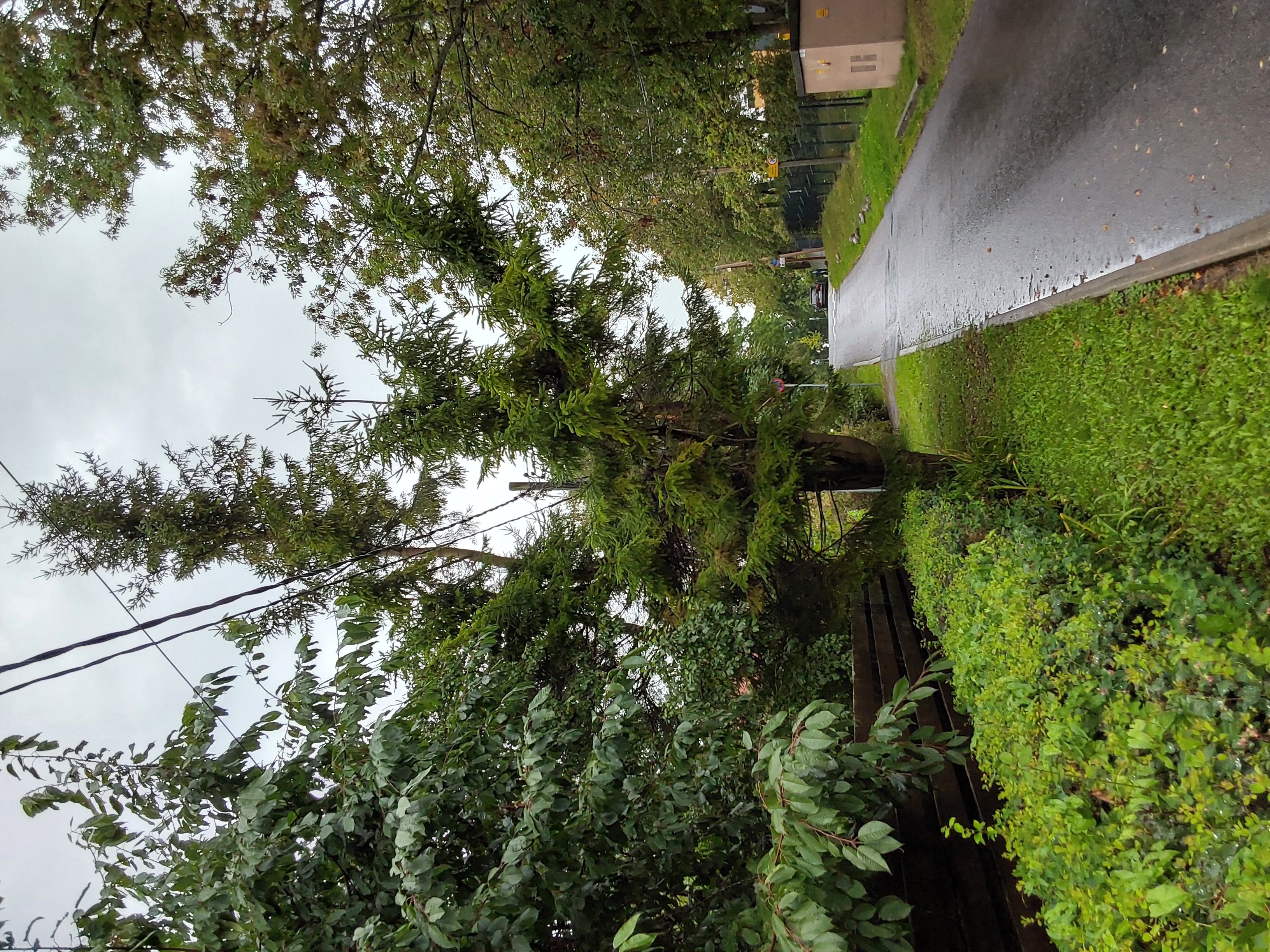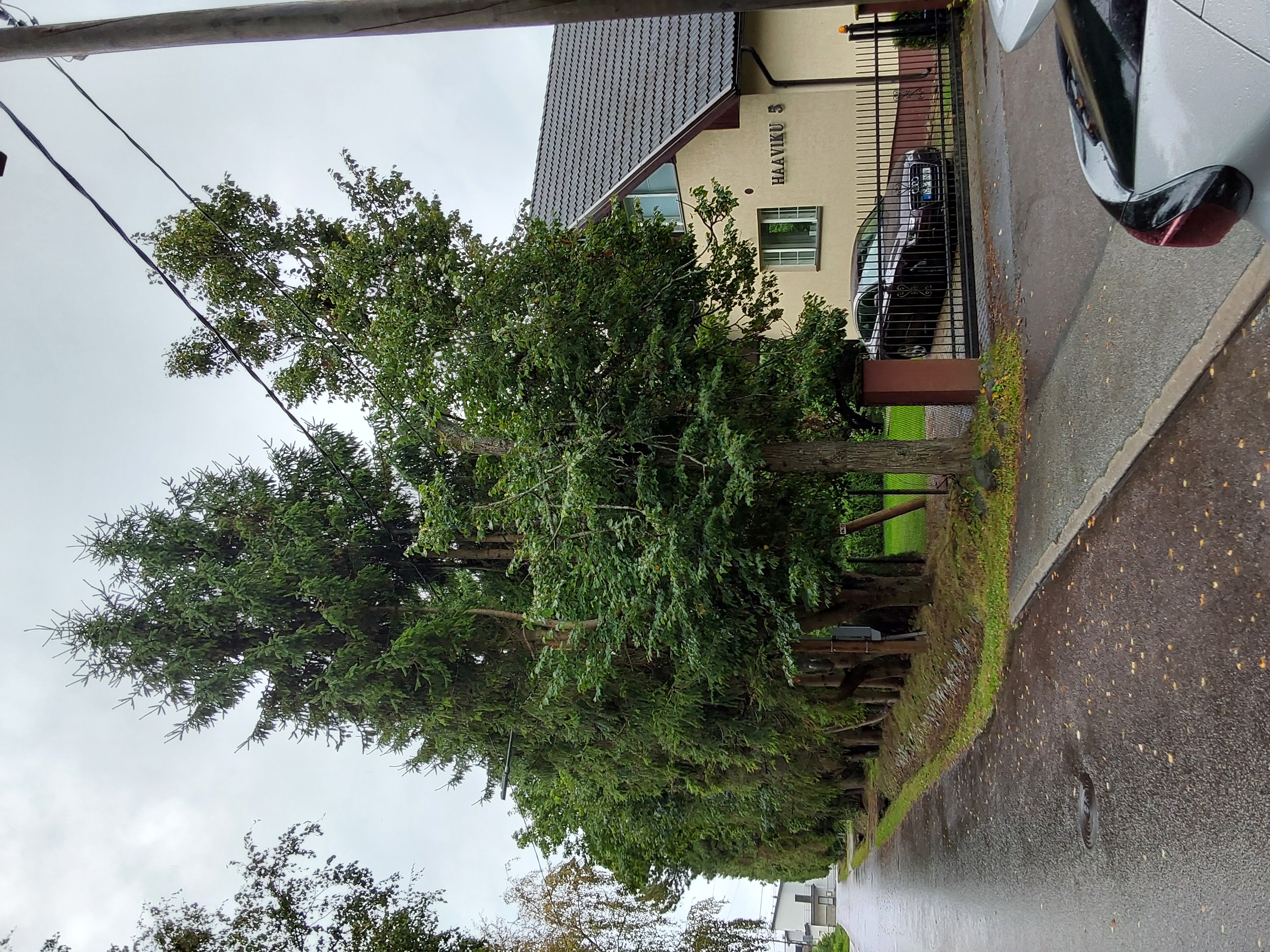 Kahjustatud puu raie | Õhuliinide all, tugevalt tagasi lõigatud, poolkuiv. | Ranniku tee T1 kuusk.jpg |