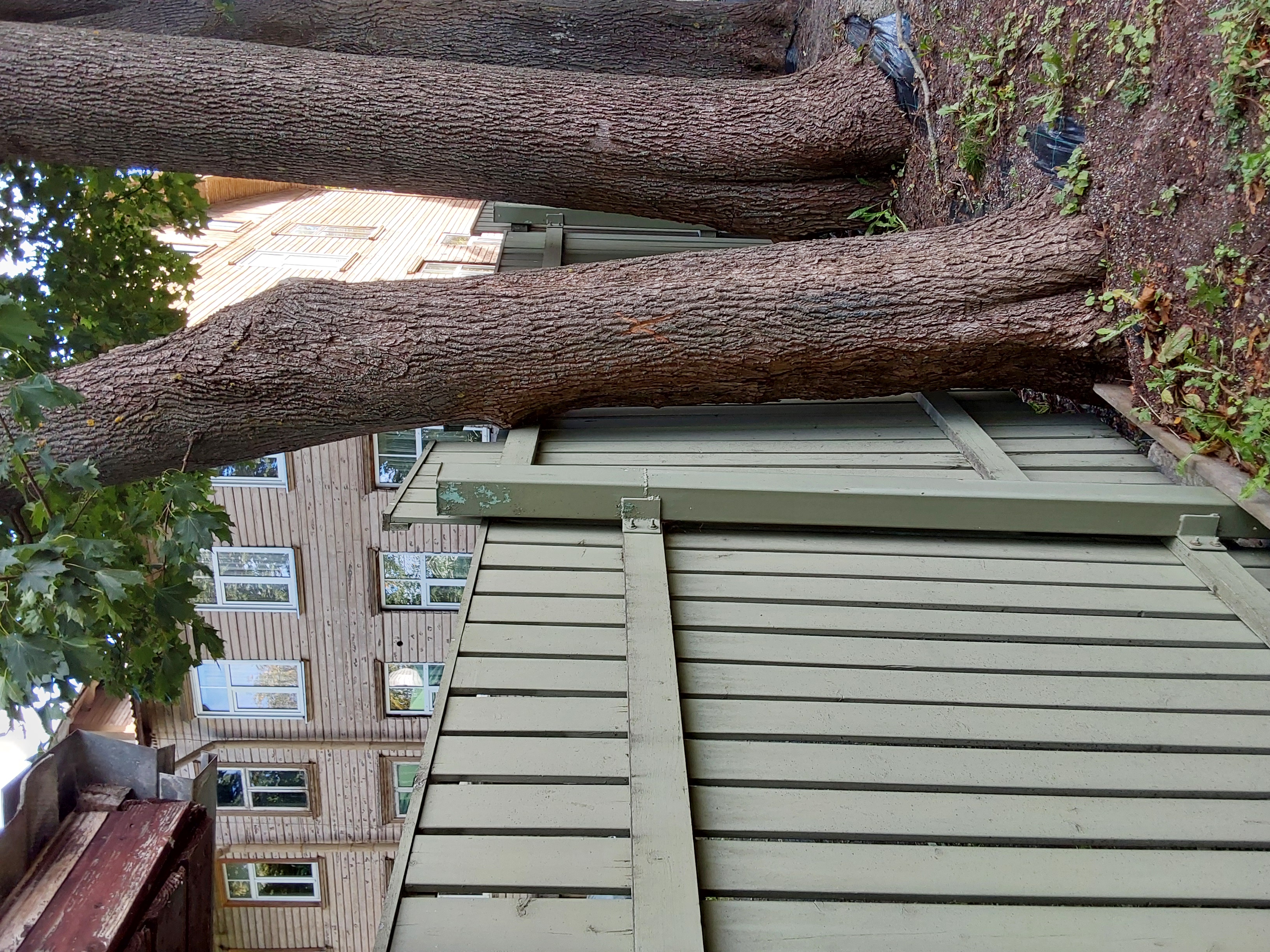 Kahjustatud puu raie | Vastu aeda, alla jäänud. | Laulupeo 7 vaher D 44.jpg Laulupeo 7 vaher vastu aeda.jpg |