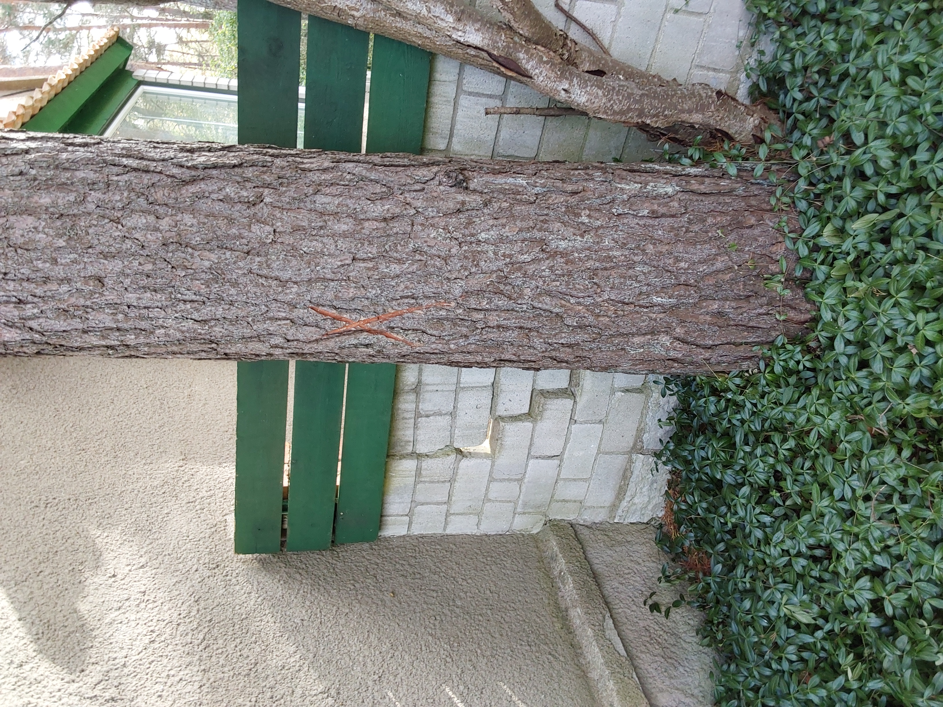 Kahjustatud puu raie | Vastu müüri, võra katuse kohal. | Ilmarise 35 mänd D50.jpg Ilmarise 35 männi oksad.jpg |